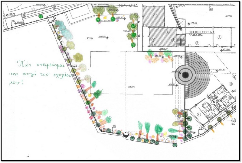 - Η αυλή του σχολείου μας με τα μάτια των παιδιών. Οι μαθητές/τριες οραματίζονται πως θέλουν την αυλή του σχολείου σε 5 χρόνια.